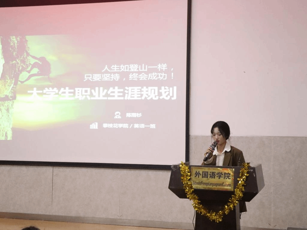 为进一步丰富大学生的大学生活和拓展对专业领域知识的了解,以及认识学子们所处的环境,理性思考未来,科学规划生涯蓝图,我院于11月4日晚在外国语多功能厅举办了攀枝花学院大学生职业生涯规划大赛初赛。