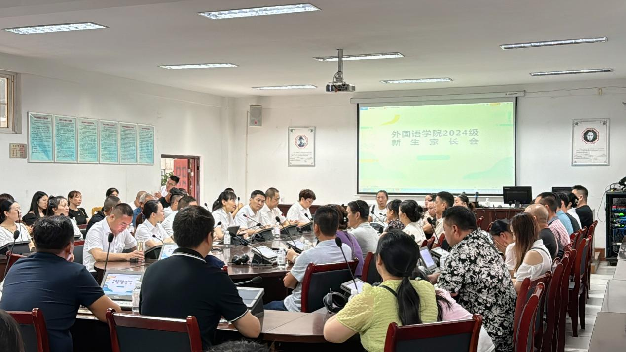 9月2日上午,外国语学院在明德楼三楼同传室举行2024级新生家长会。学院党政领导班子、各教研室主任、各科室负责人、教师代表以及2024级部分新生家长参加会议。会议由学院党委书记付乔主持。