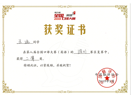 鼓励学生参加“英语综合技能大赛”、“英语口笔译大赛”、“英语演讲比赛”等校内外各项学科竞赛,以赛促学提高人才培养质量。多名学生获得全国口译大赛四川赛区二等奖和三等奖。