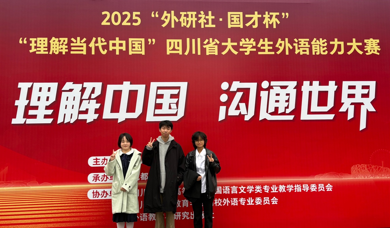 2025年“外研社·国才杯”“理解当代中国”四川省大学生外语能力大赛省级比赛于11月2日在成都理工大学落幕。本次比赛汇聚了来自全省50所本科高校的863名选手同台竞技。在外国语学院严艳、孙久媚、陈怡、刘小宇、付乔老师的悉心指导下,我校选手表现优异,荣获11个省级奖项。