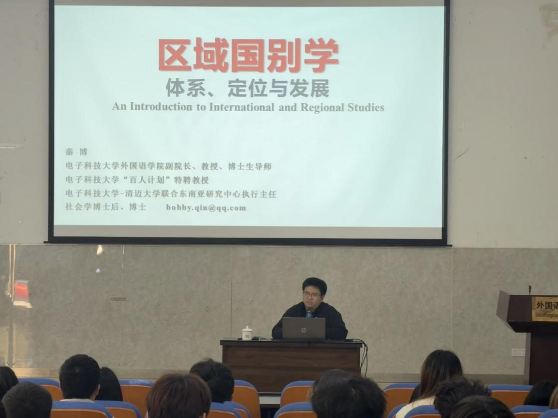 12月19日,电子科技大学外国语学院副院长、博士生导师秦博教授应邀莅临我院,作题为“区域国别学:体系、定位与发展”的专题讲座。讲座由我院院长高朝阳教授主持,全院教师、全体研究生及部分本科生参加讲座。