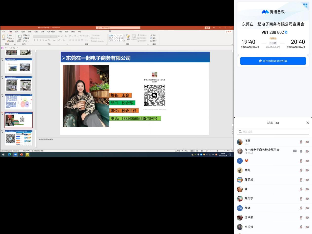 2023年10月24日,在一起电子商务公司通过线上腾讯会议面向外国语学院全体2020级学生举行专场招聘会。