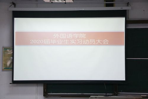 12月19日上午,由副院长王欢,书记付乔,学生科科长彭勇,英语教研室主任陈顺江老师、2016级辅导员何璇老师组织的2020届毕业生实习动员大会在第一教学楼1-1举行。