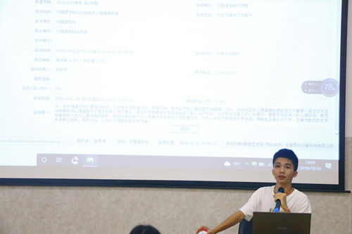 林家亨为2019级同学演示了如何进行素拓分认证,并对综合素质A级证书的评定做出详细说明,让2019级的同学们对素质拓展有了新的认识。
