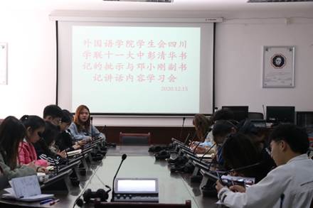 12月15日中午,我院分团委学生会在我校明德楼同声传译室组织学习了四川省学生联合会第十一次代表大会精神。