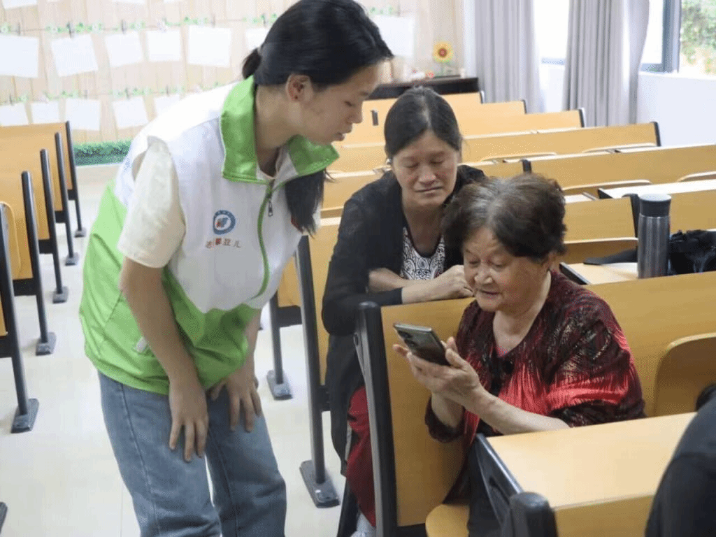 随后,志愿者们“手把手”、“一对一”,逐一为老年学员演示了如何使用智能手机进行图片编辑、视频剪辑与地图导航等实用功能的操作。针对完全不具备智能设备使用基础的老年学员,志愿者更是耐心细致,每个步骤均反复指导,直至其掌握为止。