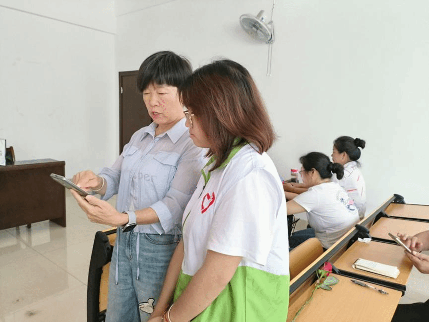 首先,志愿者们热情地为老人们介绍了微信的基本操作和使用方法。接着,志愿者们协助老人打开微信并且详细的介绍了微信各项功,同时通过教学课件向老人讲解如何使用公众号与小程序。最后,我院志愿者们采用浅显易懂的方式,配合大量的实操练习,确保每位参训的老年学员都能掌握所学知识。一对一地解答疑惑,气氛十分欢快和谐。