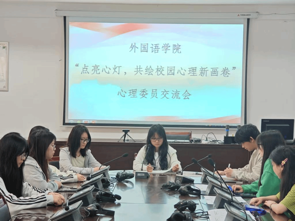 2025年3月14日,我院在明德楼三楼同传室举办了一场主题为“点亮心灯,共绘校园心理新画卷”的心理委员交流会,本次大会由学院心理健康部部长陈思怡主持,全体心理健康部干事以及各年级心理委员参与。本次交流会旨在提高心理委员的专业素养,共同探讨学院心理健康教育工作的新思路、新方法,为构建和谐校园贡献力量。