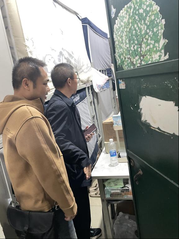 寝室排查前,全体人员于明德楼前集合。我院党委副书记张健详细部署查寝任务,明确本次检查以“安全排查、文明督导、温情沟通”为核心,重点核查违规电器使用、私拉乱接等安全隐患,同时检查宿舍内务整理、物品摆放及卫生情况。随后,各年级辅导员分批带领学生干部按预先分组,有序前往各个楼层开展排查。排查过程中,全体人员都本着严谨负责的态度,逐间细致检查,对插座负载、线路安全等关键环节逐一排查,坚决杜绝大功率电器等违规物品使用。针对部分宿舍存在的卫生死角、物品摆放杂乱等问题,现场给予整改建议,引导学生养成良好生活习惯。同时,师生们亲切交流,关心学生期末的学习近况、生活需求及思想动态,让寝室排查成为传递学院关怀的暖心桥梁。